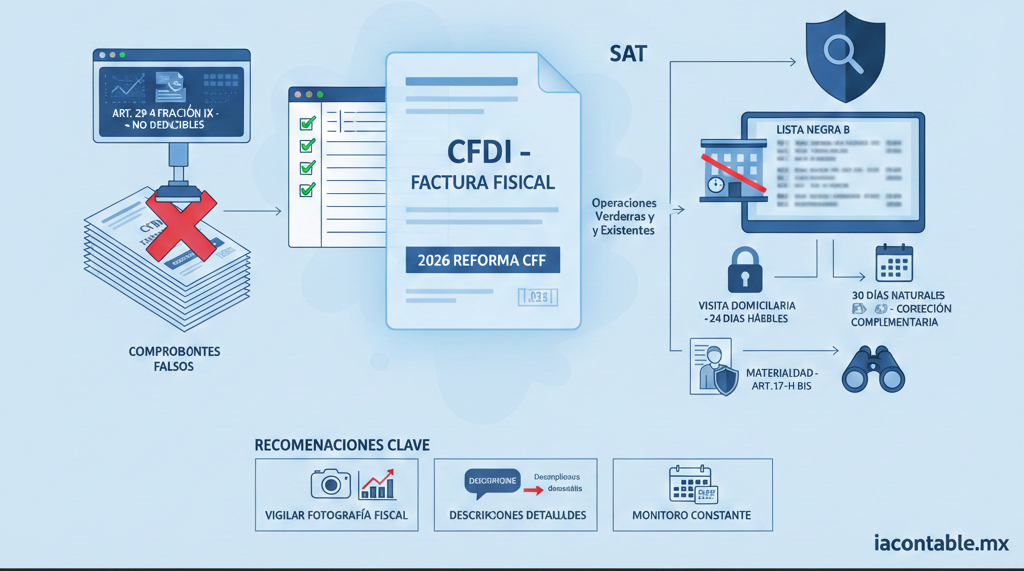 Este es un resumen del video de Mario Beltrán sobre las reformas al Código Fiscal de la Federación (CFF) para el año 2026 en materia de comprobantes fiscales falsos, preparado para iacontable.mx: